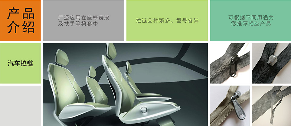 我們提供汽車專用拉鏈、標識扣、標識嘜、粘扣帶/刺毛帶,織帶/松緊帶,塑料扣件等其他汽車內飾、汽車座椅系統部件。